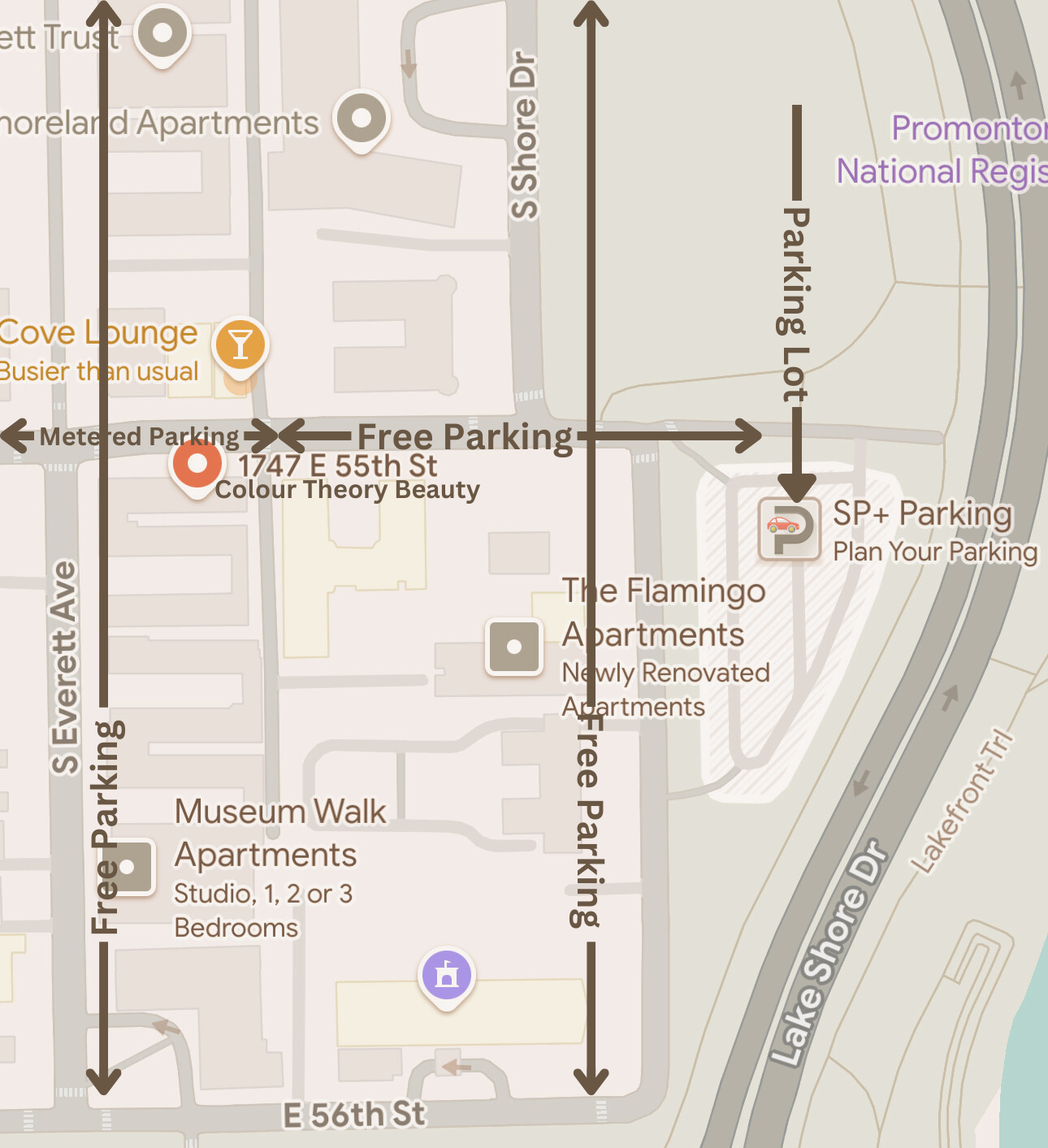 Located along S. Everett Ave, and S. Shore Drive